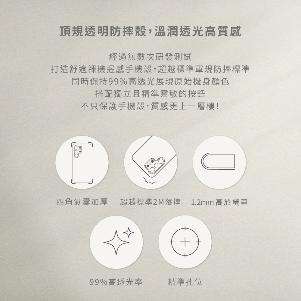 ⦿ 99%透光率展現原始機身顏色