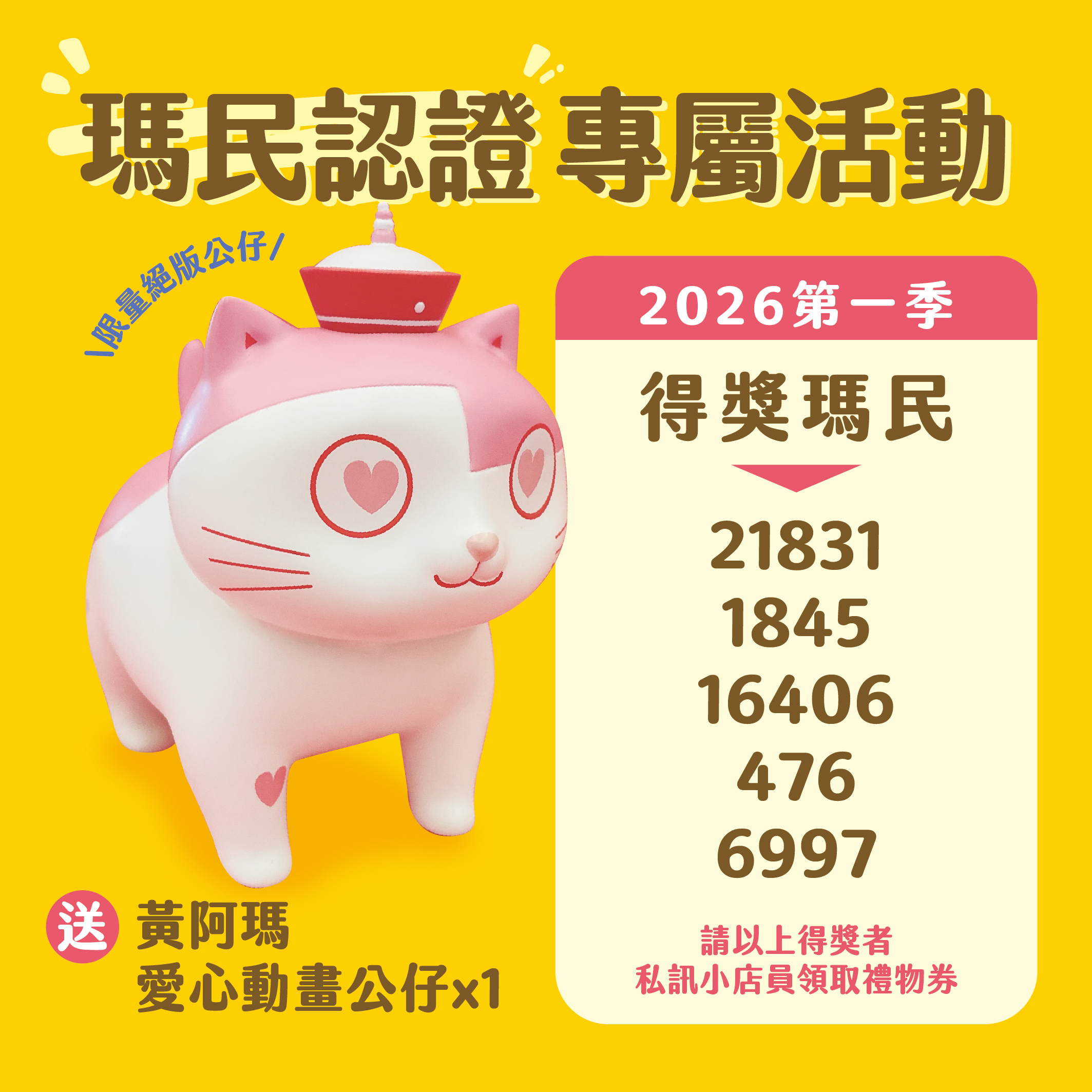 1️⃣ 得獎日會在瑪瑪商行限時動態公布得獎者,得獎者請私訊小店員。(活動頁同步更新得獎者)